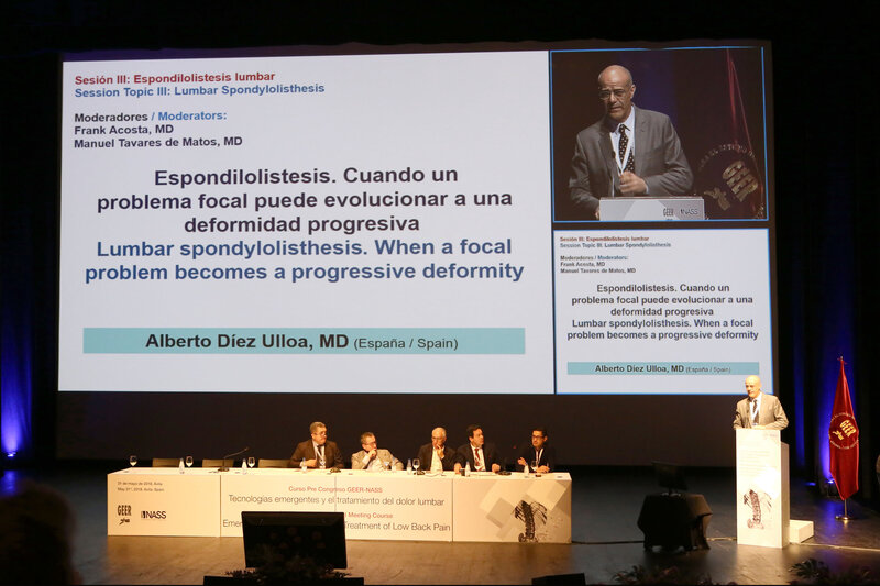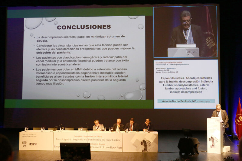 El curso GEER-NASS se centró en las actuales controversias, complicaciones, relacionados a un amplio espectro de afecciones de la columna lumbar, incluyendo espondilolistesis lumbar, enfermedad degenerativa de disco lumbar y deformidad de la columna lumbar. Además, una parte del curso estaba dedicada a la actualización de la cirugía de la columna lumbar y las tecnologías emergentes dirigidas al dolor lumbar.
